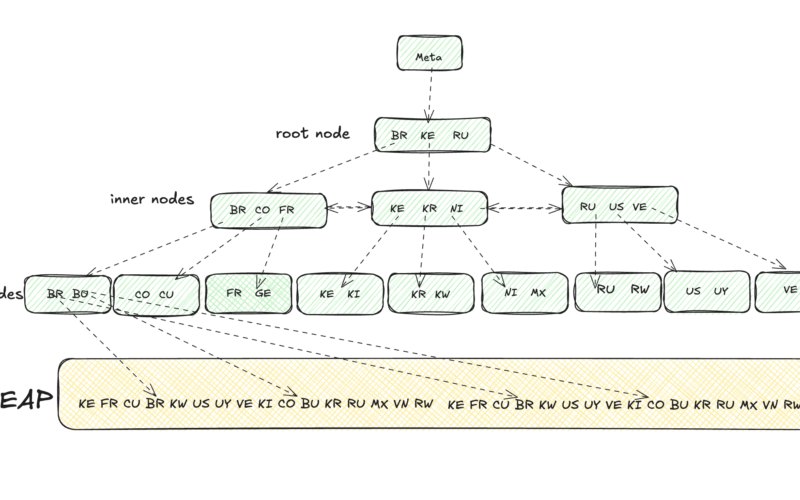 Below there’s a simplified illustration of a Postgres Btree.