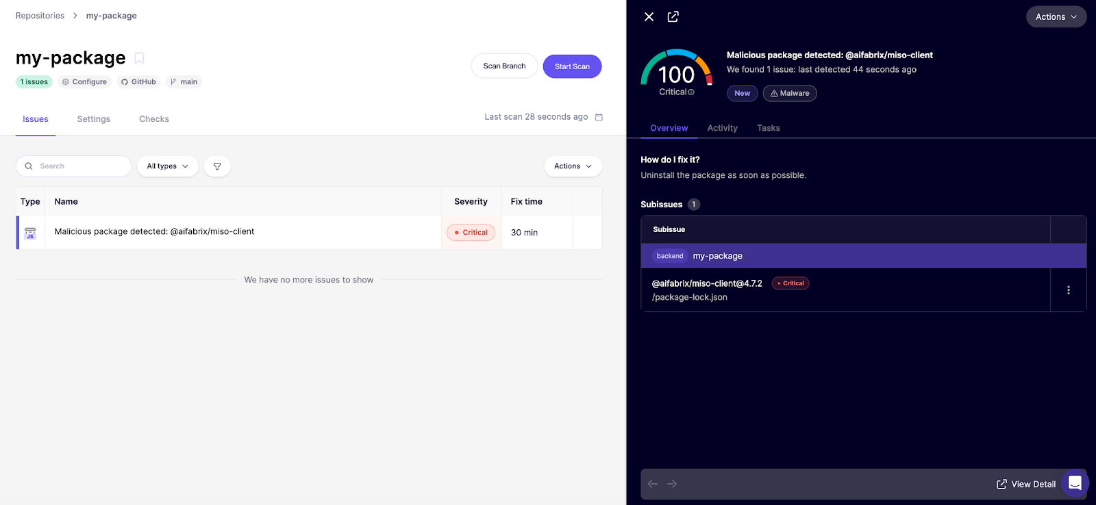 Not on Aikido yet? Create a free account and link your repositories. The free plan includes our malware detection coverage (no credit card required).