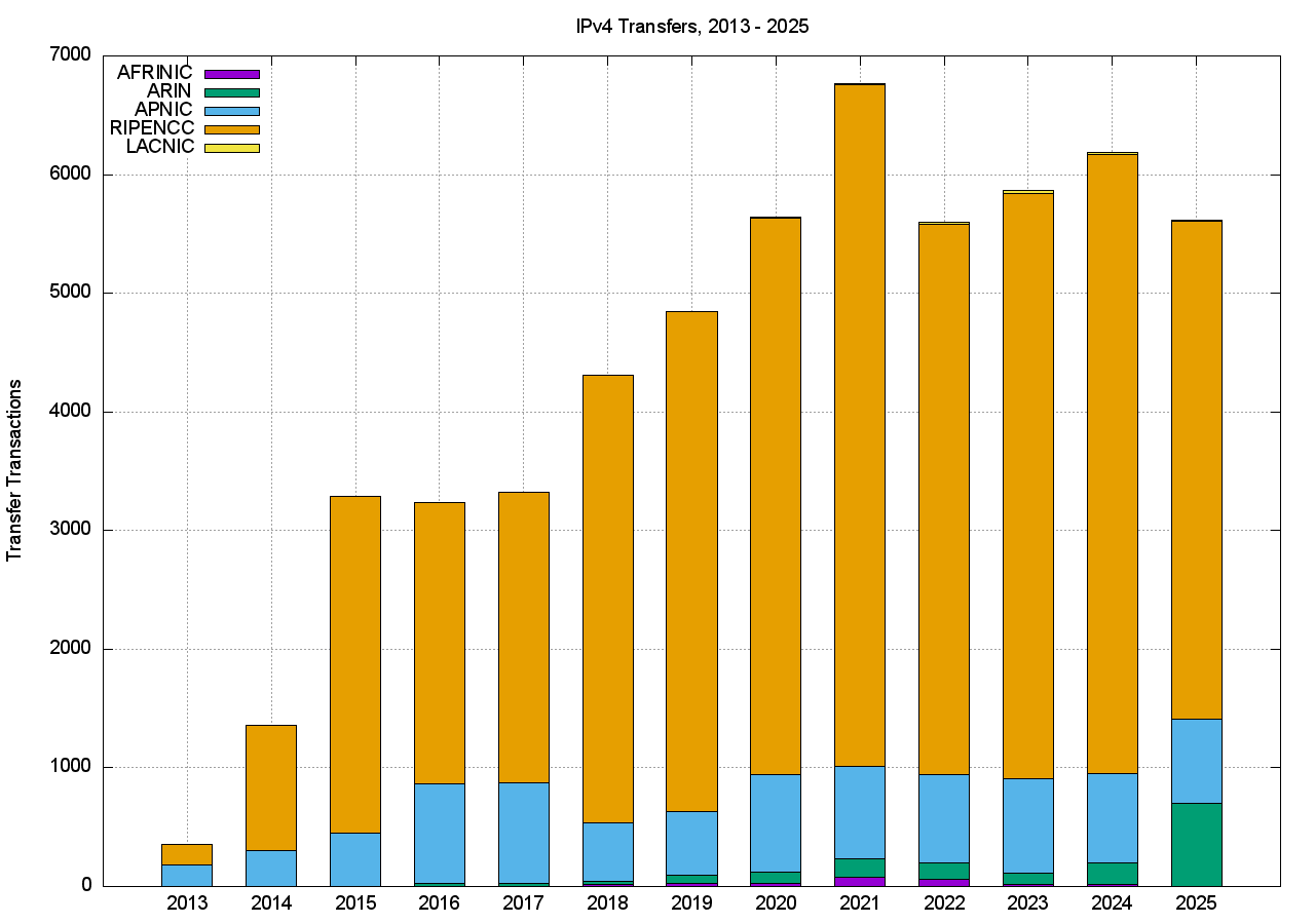 | Receiving RIR | 2013 | 2014 | 2015 | 2016 | 2017 | 2018 | 2019 | 2020 | 2021 | 2022 | 2023 | 2024 | 2025 |