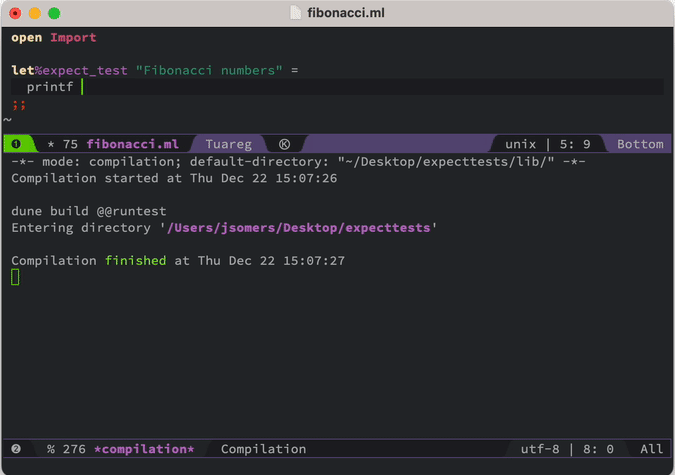 a fibonacci function. You start writing assert fibonacci(15) == and already you’re forced to think. What does