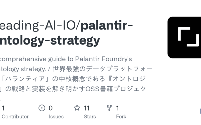 #️⃣ **#LeadingAIIOpalantirontologystrategy #comprehensive #guide #Palantir #Foundrys #Ontology #strategy #世界最強のデータプラットフォームパランティアの中核概念であるオントロジーの戦略と実装を解き明かすOSS書籍プロジェクト**