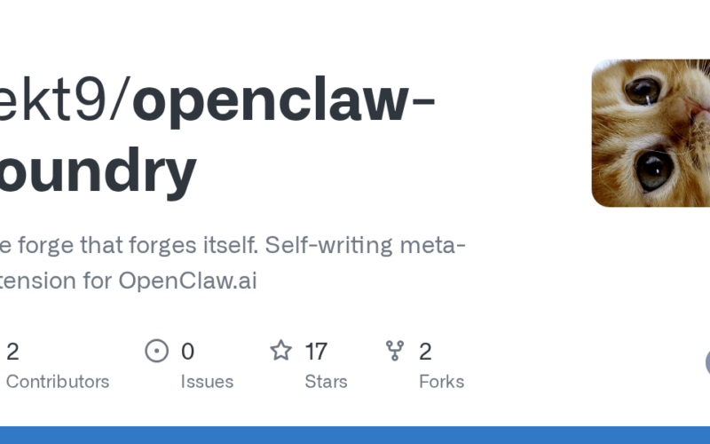 Foundry is a self-writing meta-extension for OpenClaw that learns how you work, researches documentation, and writes new capabilities into itself. It observes your workflows, crystallizes patterns into tools, and upgrades itself to match how you operate.