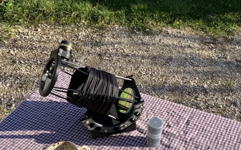 The focuser follows Analog Sky’s recipe: the tube that receives the eyepiece is also the movement itself, with a rounded thread that prints extremely smoothly with very little play. No additional hardware needed – the eyepiece is self-held by the flexion of plastic fins.