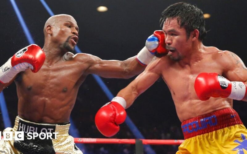 Mayweather won after 12 rounds by unanimous decision, but Pacquiao said he suffered a shoulder injury and told the BBC in 2018 that he “cannot retire with peace of mind after that defeat.”