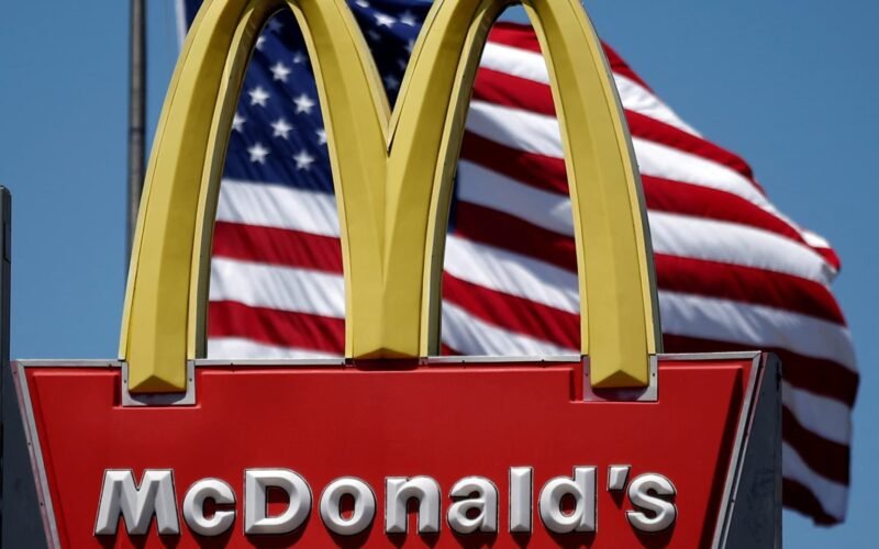 The McDonald’s logo appears in Los Angeles, California.
