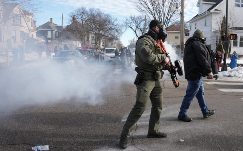 Also, federal officers on Monday fired tear gas to disperse a crowd of whistle-blowing bystanders in Minneapolis who had come to see the aftermath of a car crash involving immigration agents, just blocks away from last week’s deadly shooting.