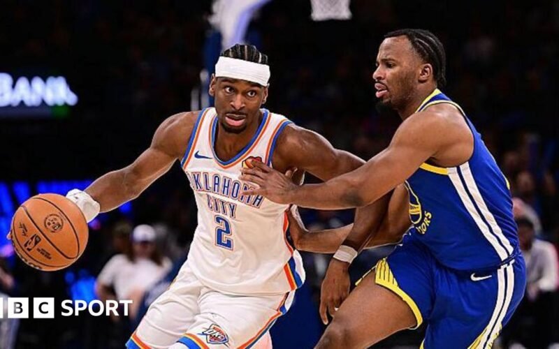 The Warriors, who were again without an injured Stephen Curry, scored seven unanswered points as the Thunder closed the gap to 99-97 before a three-pointer from Gilgeous-Alexander in the final minute.