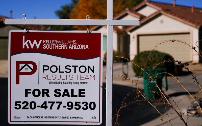 A “For Sale” sign is seen outside a residential home in Oro Valley, Arizona, on December 12, 2025.