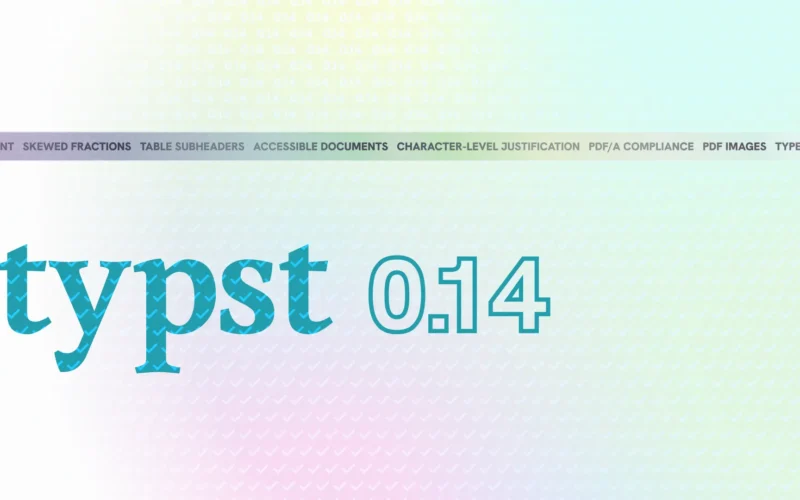 If you need to comply with accessibility-related regulations, Typst 0.14 has your back. Typst now generates accessible documents by default, with opt-in support for stricter checks. For those working with complex illustrations, PDFs are now supported as a native image format. In case you’re typesetting a book, the new character-level justification will give your layout the final touch. And if you’re building a website or blog, many improvements to Typst’s HTML export are waiting for you.