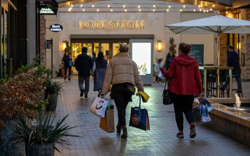 Shoppers carry their bags at Broadway Plaza in Walnut Creek, California, U.S., Monday, December 16, 2024. The Bureau of Economic Analysis is scheduled to release personal spending numbers on December 20.