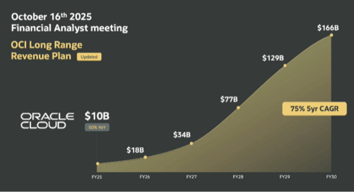 At an analyst day last month in Las Vegas, Oracle said it was aiming for cloud computing revenue of $166bn by 2030: