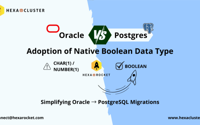 To simplify end-to-end database migrations from Oracle to PostgreSQL, we have announced our tool called Hexarocket. One of the advantages of using this tool is that – during data migration from Oracle to PostgreSQL, it can automatically map CHAR(1) and NUMBER(1) of Oracle to BOOLEAN in PostgreSQL.