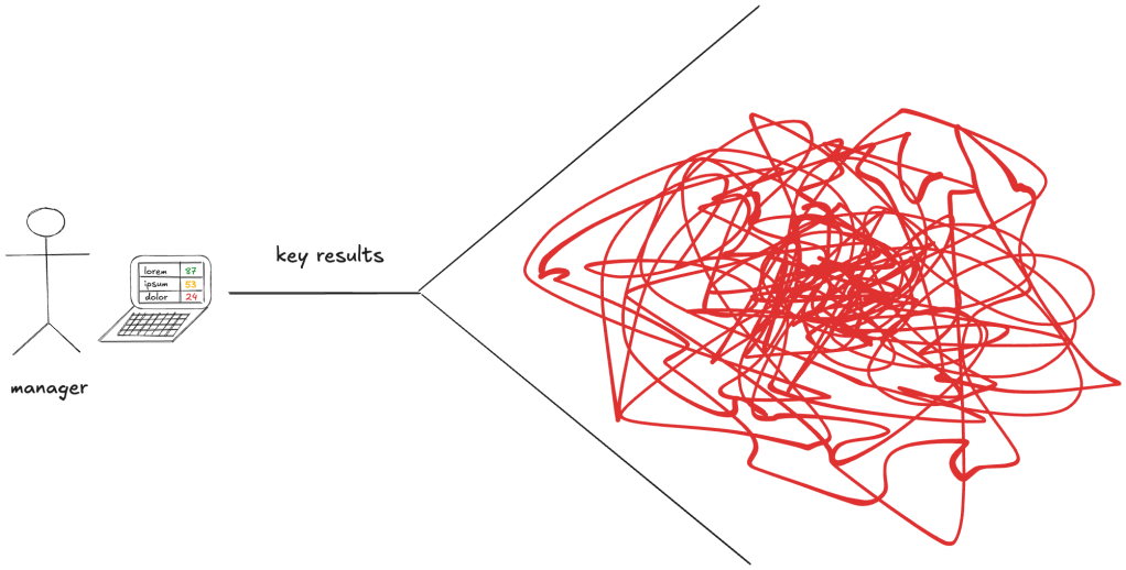 The beauty of a set of key results is that they take the messiness of the system as input and create a neat summary in spreadsheet or slide format as output.