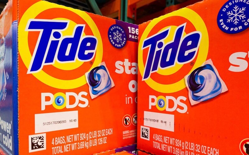 Boxes of Tide Pods dishwasher detergent are displayed at a Costco wholesale store on July 12, 2025 in San Diego, California.
