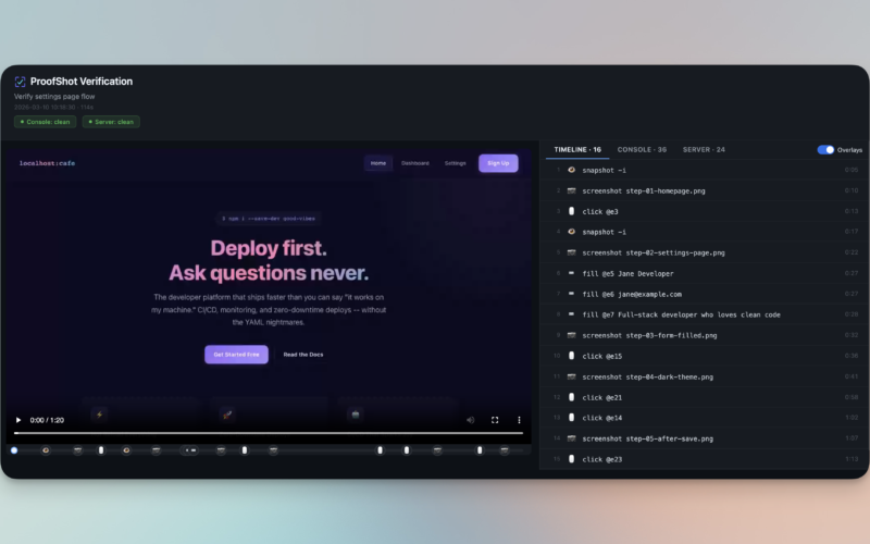 ProofShot wraps your dev server, records everything the agent does, and outputs a proof bundle when it’s done.