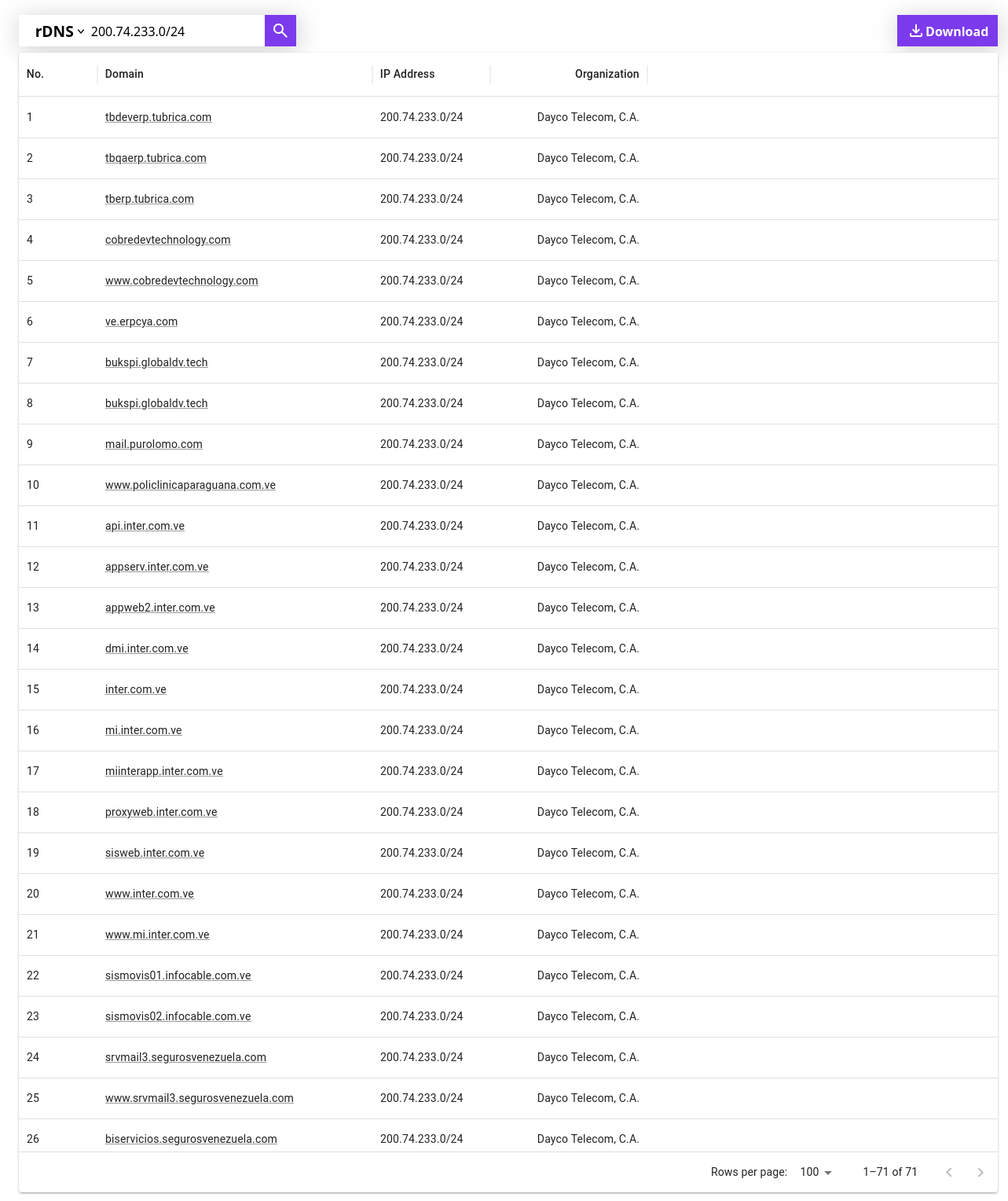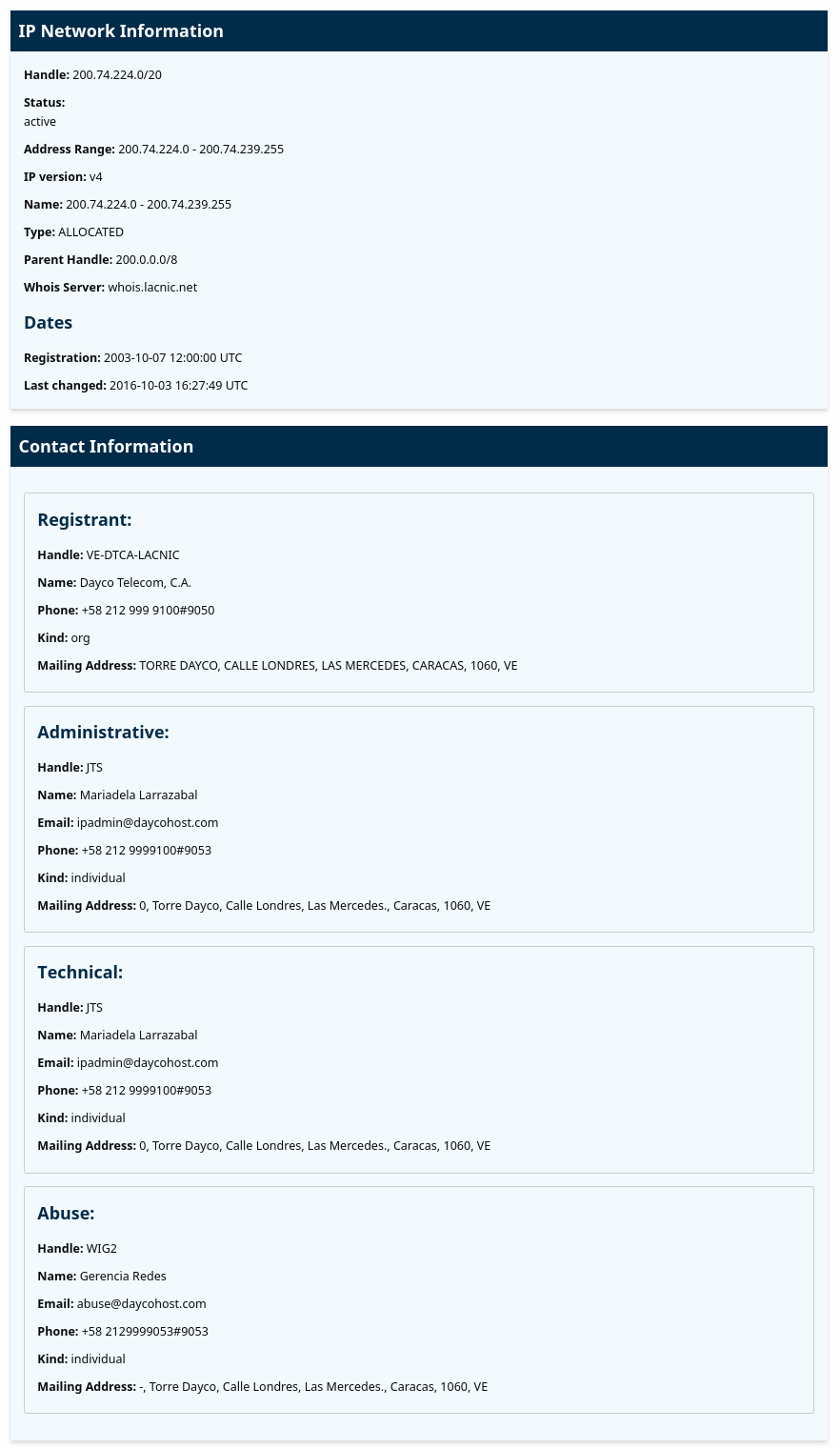 A quick WHOIS lookup shows this range belongs to Dayco Telecom, a hosting and telecommunications provider in Caracas.