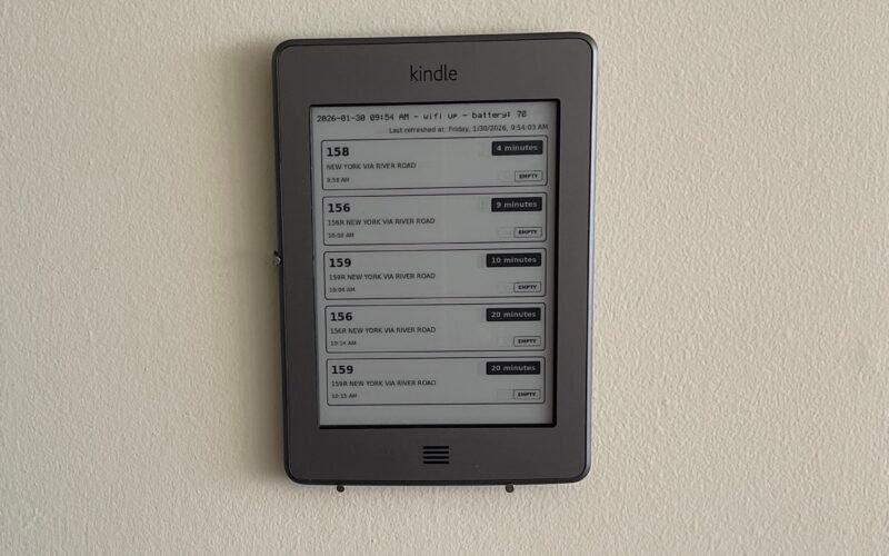 This is how I turned an old Kindle (Kindle Touch 4th Generation/K5/KT) into a live bus feed that refreshes every minute with the option to exit out of dashboard mode by pressing the menu button. It’s basically TRMNL without the $140 price tag.