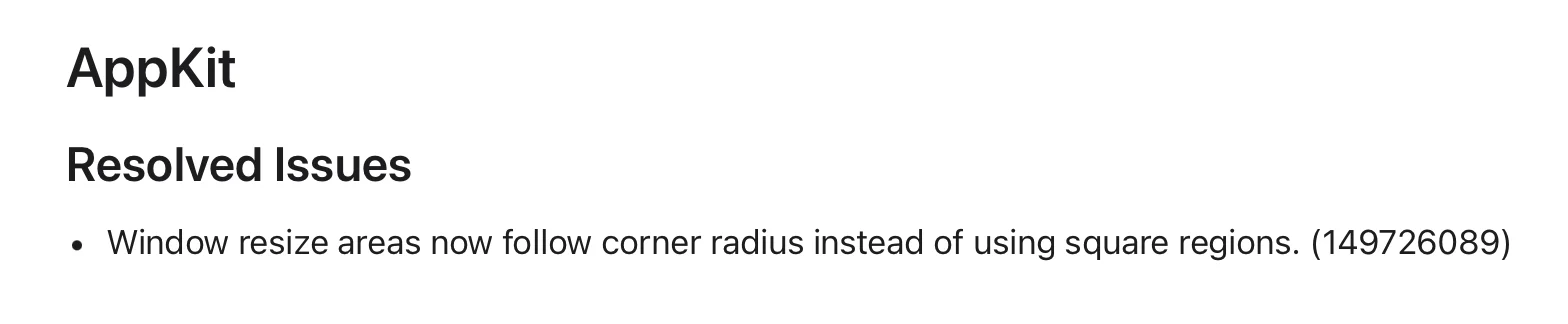 In the release notes for macOS 26.3 RC, Apple stated that the window-resizing issue I demonstrated in my recent blog post had been resolved.