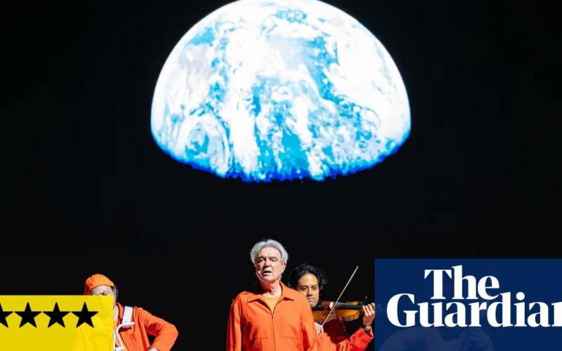 DDavid Byrne and his 12-piece backing band, head to toe in iridescent orange, look like they’re about to catch fire. On a spacious, empty stage – devoid of speakers, microphones or any of the usual things that anchor a live performance – the former Talking Heads frontman is still brimming with restless energy.