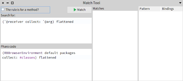Pharo already provides dedicated tools for the rewrite engine, such as StRewriterMatchToolPresenter: