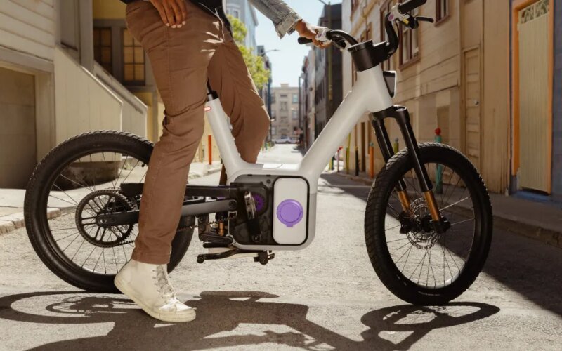 The top frame of the TM-B is modular by design, so the bike can be transformed without tools into a cargo hauler, kid carrier, or cruiser with a bench seat. The seat post is unlocked via a quick swipe from the 5-inch circular touchscreen console. An inverted front fork suspension and air shock will help soak up bumps for riders ranging from 4 feet 11 inches to 6 feet 8 inches.