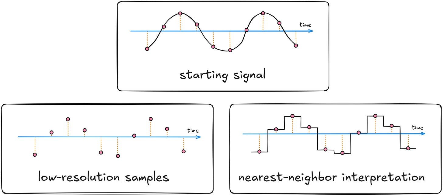 Let’s start with downsampling: what if we divide the data stream into buckets of n samples each, and then map the entire bucket to a single, averaged value?