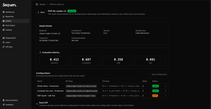 Companies that work with Sequen integrate with the startup’s RankTune platform, allowing them to access Sequen’s parametric and real-time ranking models through APIs. (Sequen customers already use some sort of internal API to run their trapping suite, so they just replace their own API with Sequen’s.)