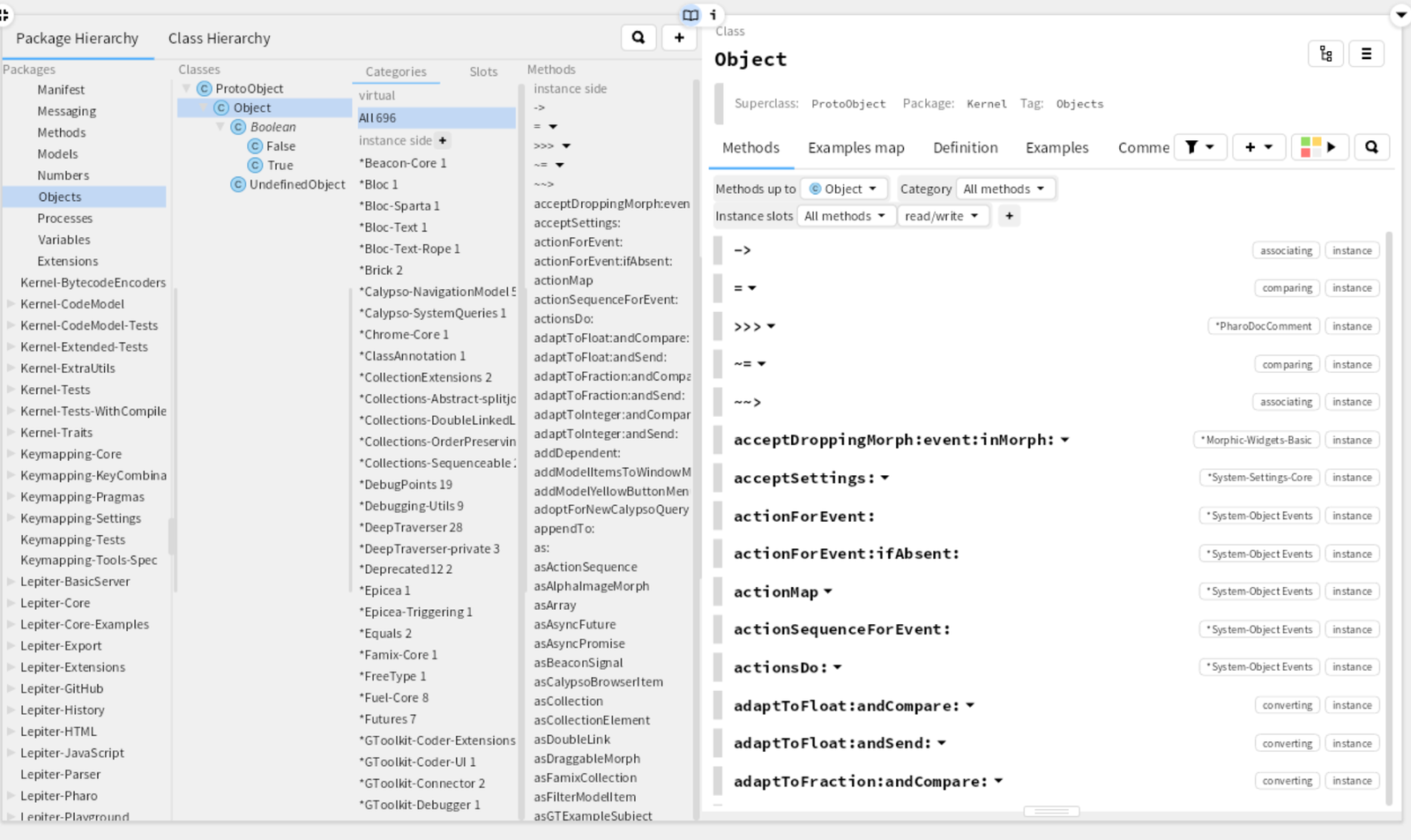 This metaphor has been present in essentially every Smalltalk with a full IDE (and yes: there are Smalltalk systems without a traditional IDE, like GemStone or GNU Smalltalk). It has collected both praise and criticism. What’s striking is that it has not been displaced.