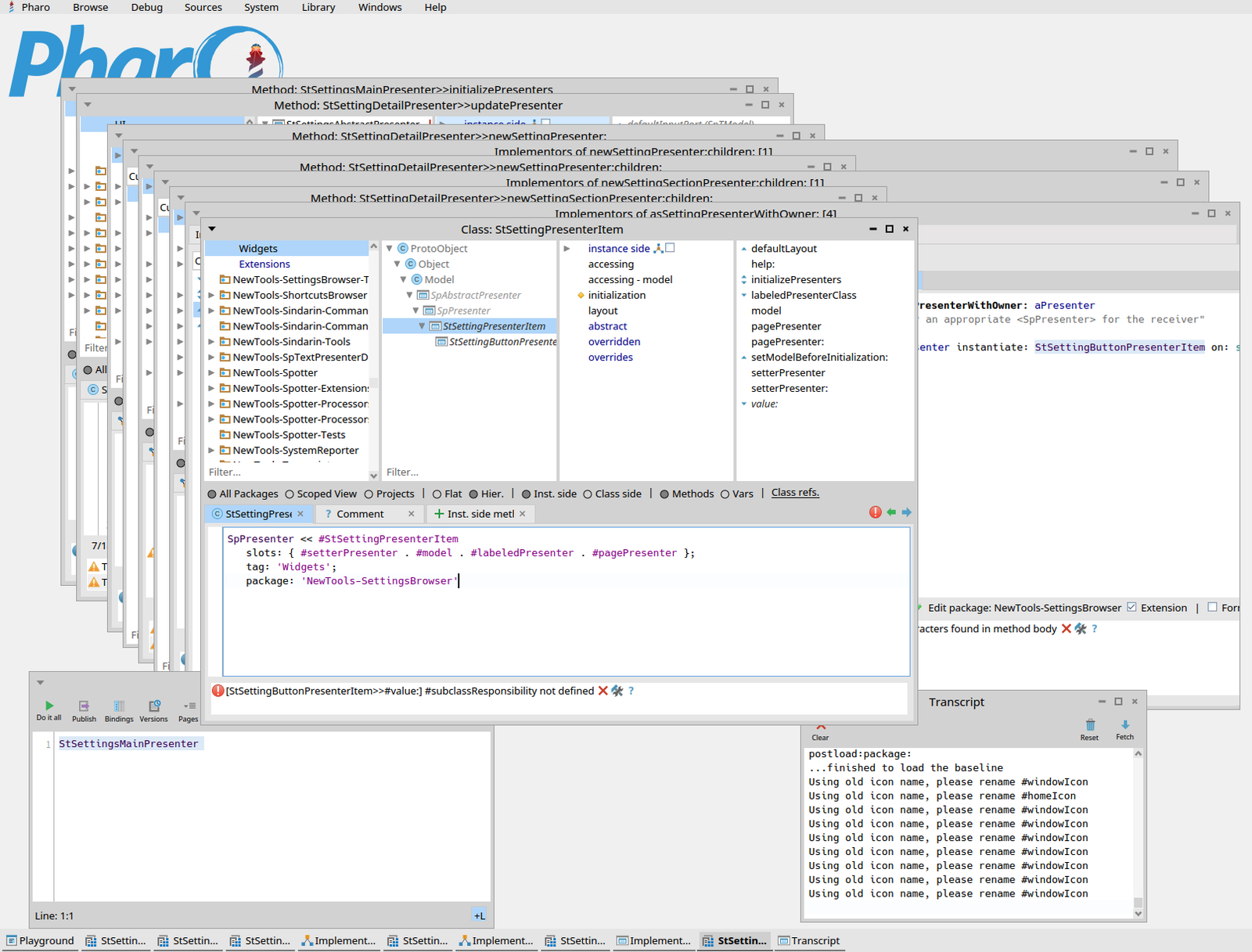 And in Pharo (and in all Smalltalk systems I know), these tools coexist without composing smoothly. They sit next to each other, but they don’t feel truly integrated in the way “IDE” suggests. The result is a workflow that can become chaotic: the tools reduce complexity (because they are powerful) and increase complexity (because the working set is hard to keep coherent).