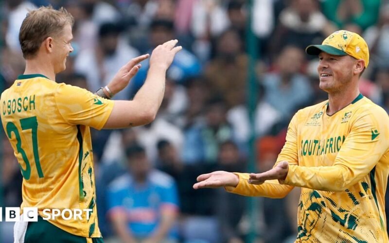 The covers came out during the innings break as rain delayed South Africa’s response but when they returned, the Proteas were given a fast start by skipper Aiden Markram, who smashed an 11-ball 28.