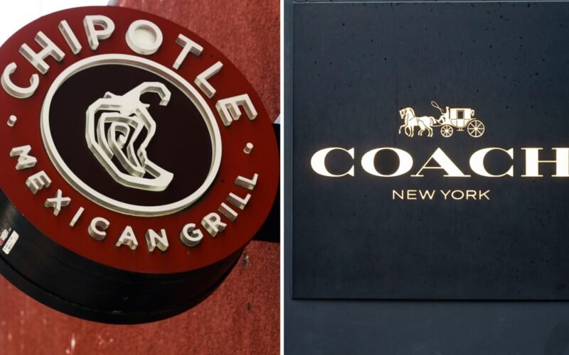 Chipotle Mexican Grill and Coach store logos.