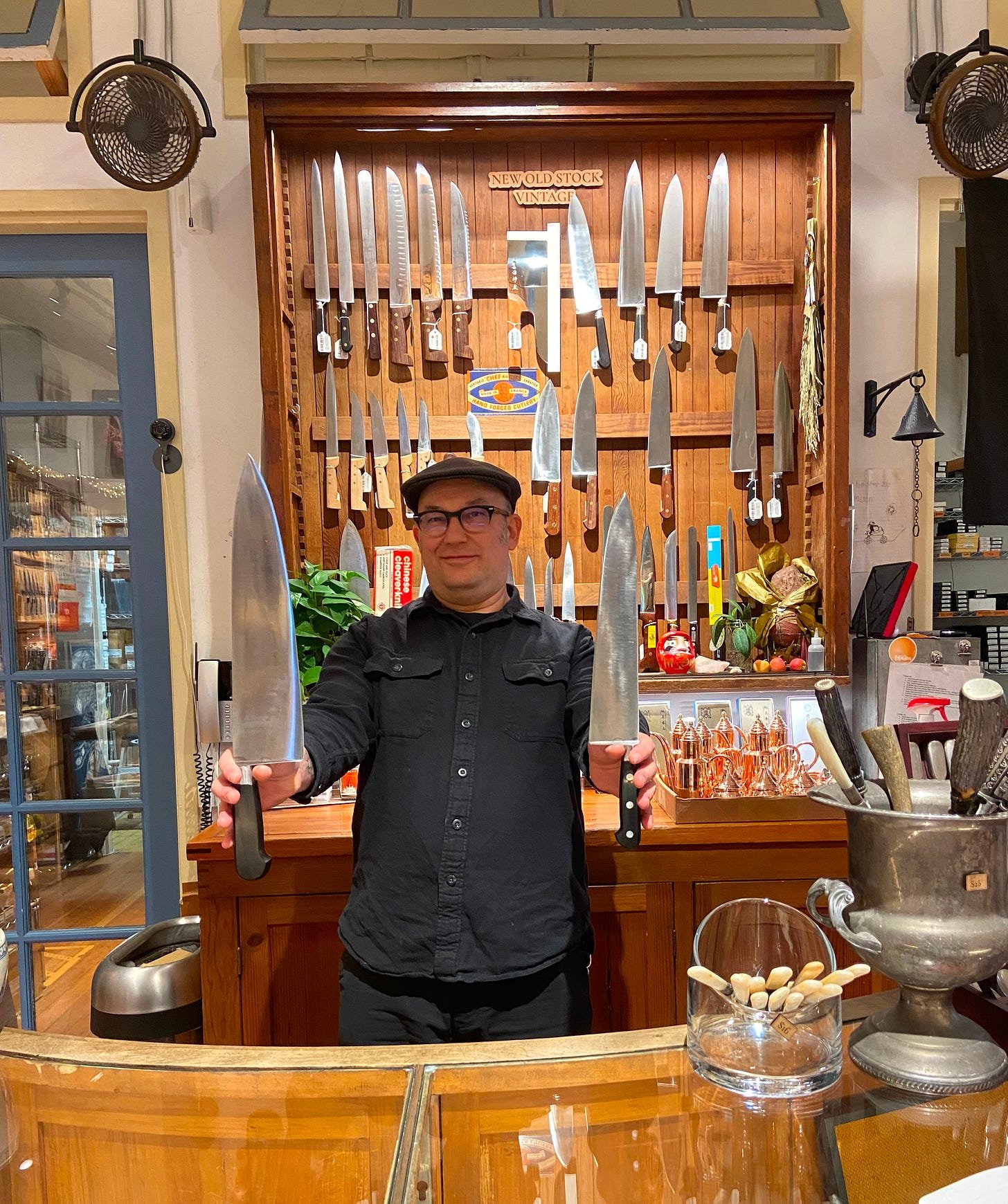 12″ chef knives used to be a much more common part of a professional’s tool kit. Origin-wise, they span a range of different locals. French, German, and American make are the most commonly found by me vintage knife-wise. The 12″ chef knife is the knife of one in charge, either of their station or of the kitchen; it puts the chief in chef. For many volume-oriented tasks, it screams past smaller knives in its ability to blast through a large stack of something vegetal or slice thin something big and animal. It was certainly not the only knife used, but it was part of the armory.