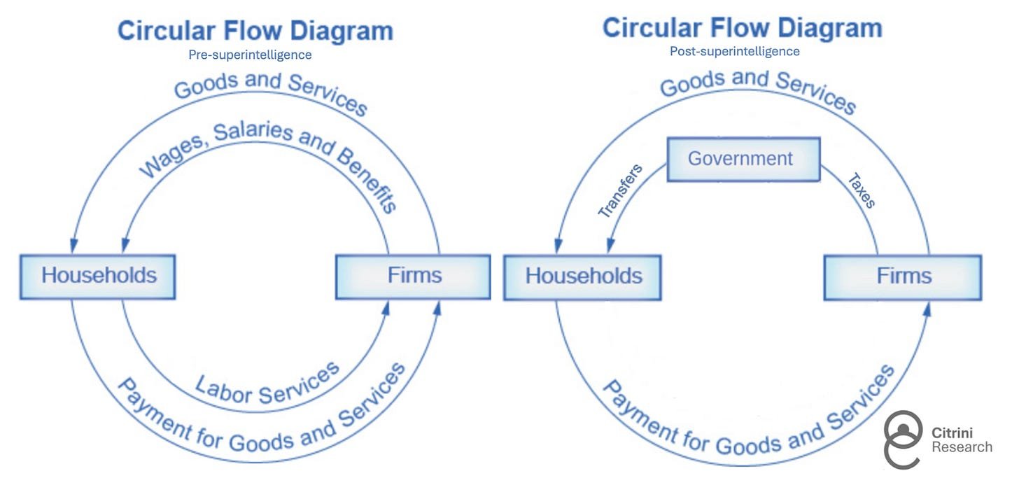 The output is still there. But it’s no longer routing through households on the way back to firms, which means it’s no longer routing through the IRS either. The circular flow is breaking, and the government is expected to step in to fix that.