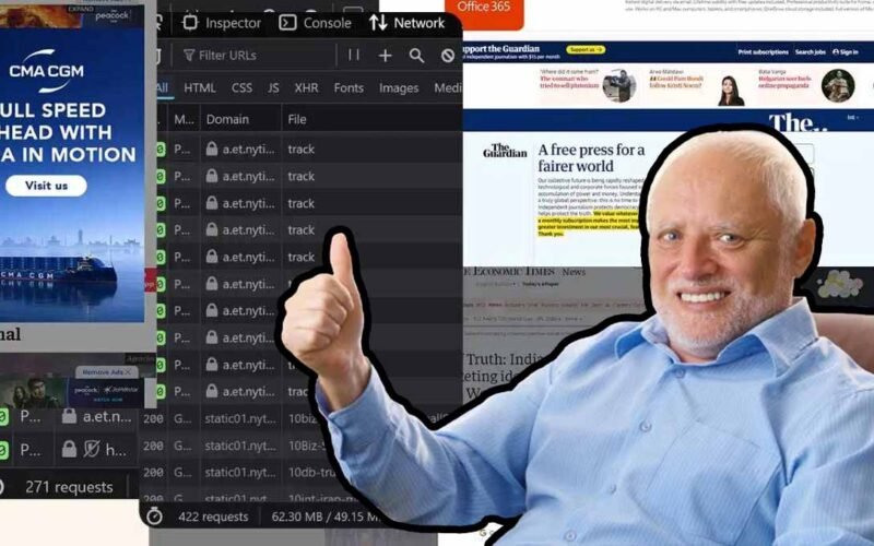 and was greeted with 422 network requests and 49 megabytes