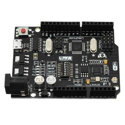 However, the Arduino FDC Floppy library is only compatible with the AVR-based Arduinos, not the ESP-based ones, because it needs to control the timing very precisely and therefore uses a healthy amount of inline assembler. This meant that I would need one AVR-based Arduino to control the floppy disk, but another ESP-based one to do the WiFi communication. Such combined boards do exist, and I ended up using such a board, but I’m not sure I would recommend it: the usage is really finagly, as you need to set the jumpers differently for programming the ATmega, or programming the ESP, or connecting the two boards serial ports together.