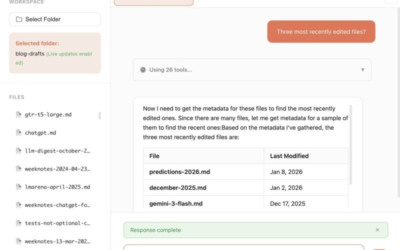 Thanks to this post I also learned about the tag which turns out to work on Firefox, Safari and Chrome and allows a browser read-only access to a full directory of files at once. I had Claude knock up a webkitdirectory demo to try it out and I’ll certainly be using it for projects in the future.