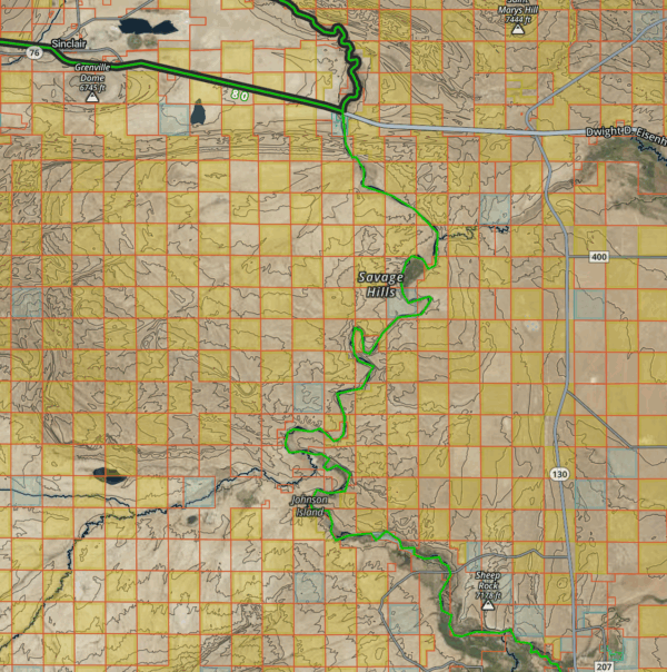 Moving through checkerboarded land works in the same way. To avoid the ranch’s property, all Brad and Phil and the others had to do was move around like a checkers piece. They’d start on public land and then make sure to stay on public land, by crossing into new squares diagonally, at the corners where all those public squares touch.