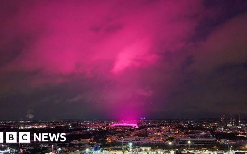 Getty ImagesAs rare snow fell over much of the West Midlands on Thursday evening, residents were amazed by an unexpected sight: a mysterious pink glow lighting up the sky.