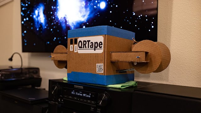 In this blog I demonstrate a system that exploits modern computer vision and audio compression to replace the complex mechanical tape transports of the past. In fact, my tape transport is made entirely from paper and cardboard (excluding some electronics, of course). I have decided to call this system QRTape.