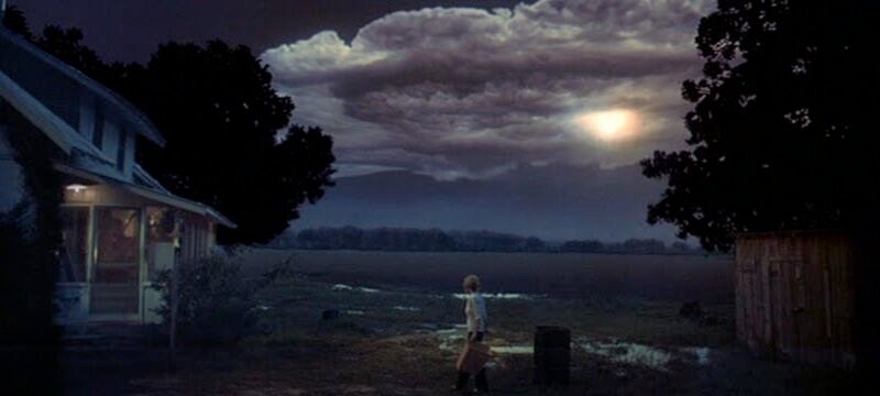 Later in the film, when the aliens arrive at Devil’s Tower, a clear night sky is suddenly covered with clouds that seem to come from nowhere. Very spooky.