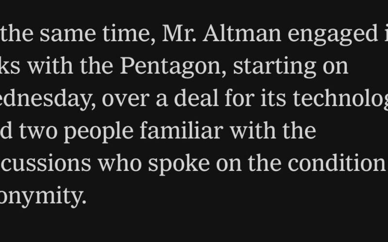 Probably you already saw how it all turned out. On the very same day that Altman offered public support to Amodei, he signed a deal to take away Amodei’s business, with a deal that wasn’t all that different. You can’t get more Altman than that.