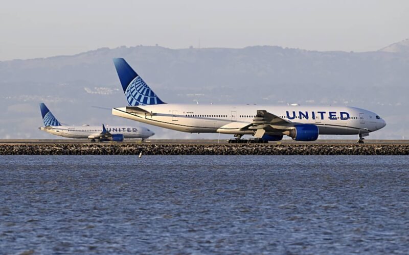 United Airlines planes take off from San Francisco International Airport.
