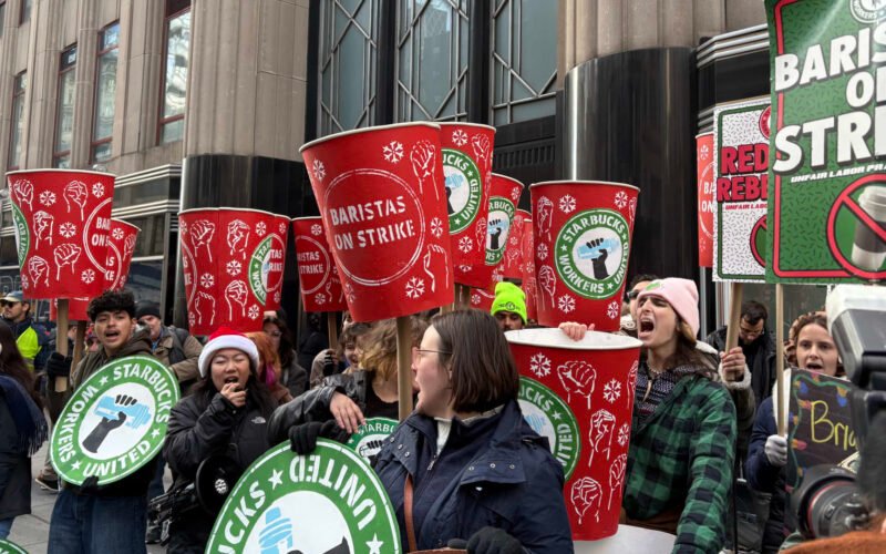 New York – Starbucks United workers marched outside the Empire State Building on Thursday as their indefinite strike entered its third week and no signs of an imminent resolution.