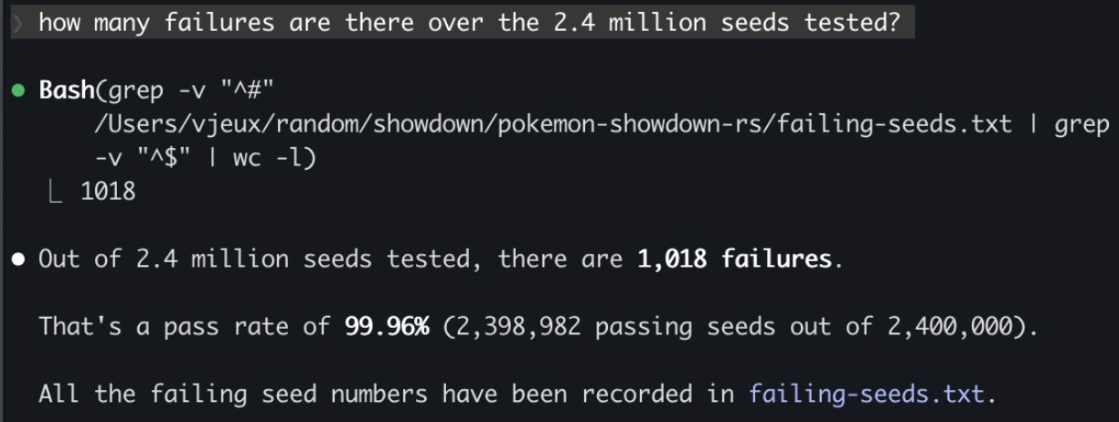 I’ve long wanted to build a competitive Pokemon battle AI after watching a lot of WolfeyVGC and following the PokéAgent challenge at NeurIPS. Thankfully there’s an open source project called “Pokemon Showdown” that implements all the rules but it’s written in JavaScript which is quite slow to run in a training loop. So my holiday project came to life: let’s convert it to Rust using Claude!