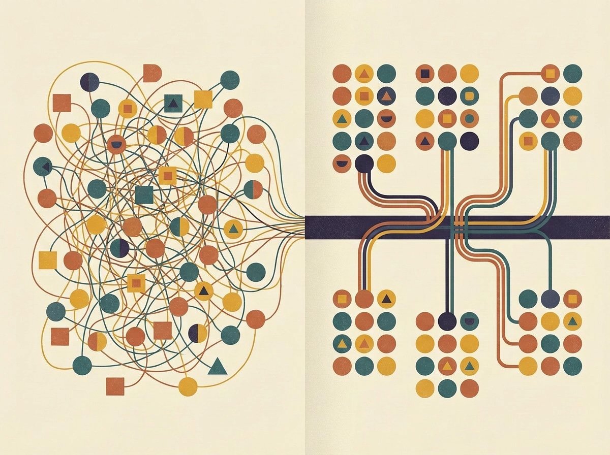 “This is the spaghetti problem,” Tom said, not unkindly. “You’ve got forty tools. They share data. When you regenerate one, you can’t predict what happens downstream, because the connections aren’t specified… they’re just… there. They grew organically. Nobody designed the system. You designed forty individual tools and they grew into a system on their own.”