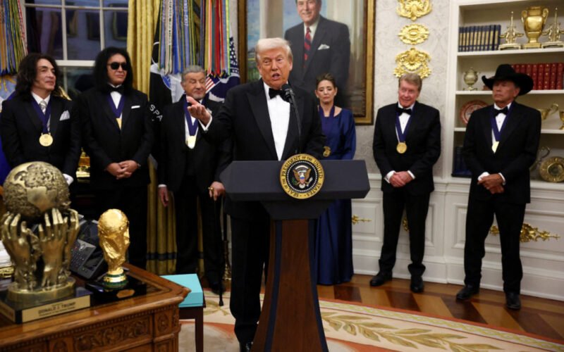 WASHINGTON (AP) — President Donald Trump on Saturday presented the 2025 Kennedy Center honorees with their medals during a ceremony in the Oval Office, praising the list of artists he was deeply involved in selecting as “perhaps the most accomplished and distinguished class” ever assembled.
