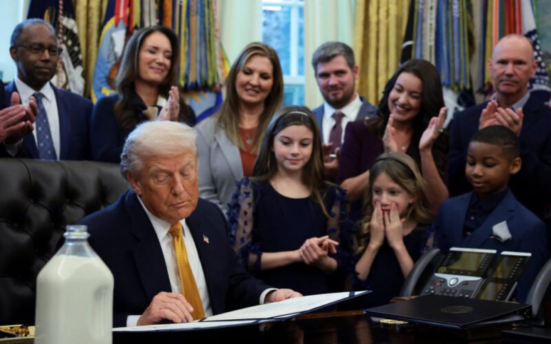 “Whether you’re a Democrat or a Republican, whole milk is a great thing,” Trump said at a signing ceremony at the White House that included lawmakers, dairy farmers and their children.