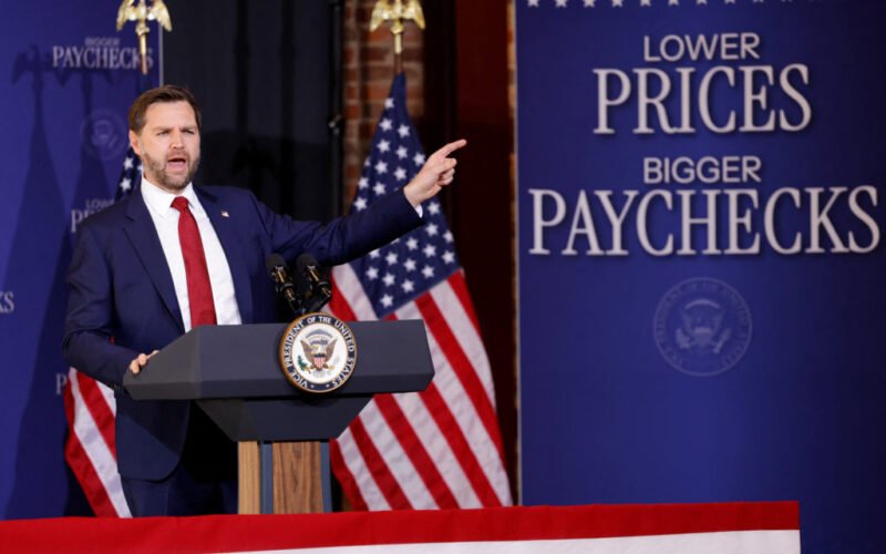 Vice President J.D. Vance delivered remarks on the economy Friday in Rocky Mount, North Carolina, in a newly redrawn congressional district seen as competitive for the Republican Party in the November midterm elections.