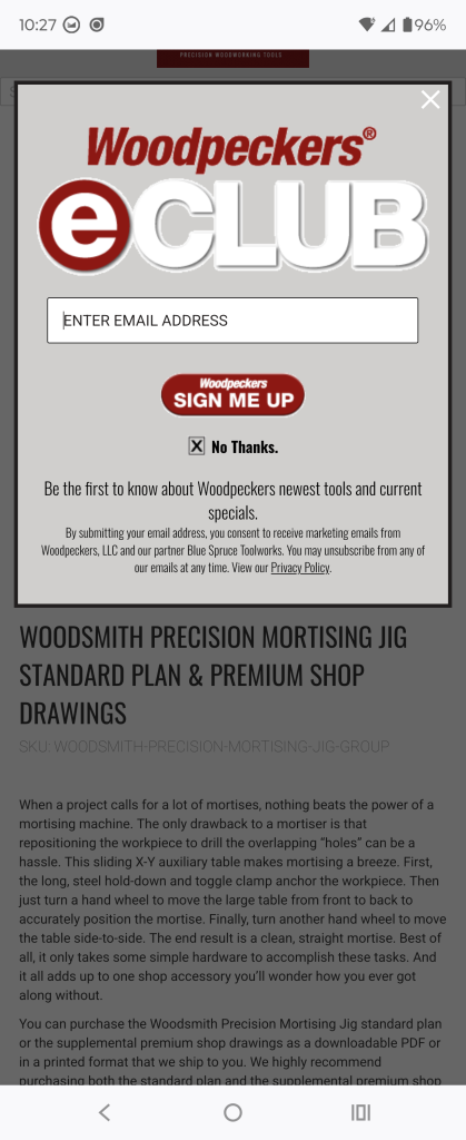 Pop-ups are back, and they’re worse than ever. The pop-up ad developers have evolved to work around browser’s built-in pop-up blockers, but web browser developers haven’t been keeping up in the arms race. The same patterns from the early 2000s are all back again: popping up at random times to intercept your interactions; needless distractions covering up what you intended to view; misleading or difficult-to-find dismissal buttons.