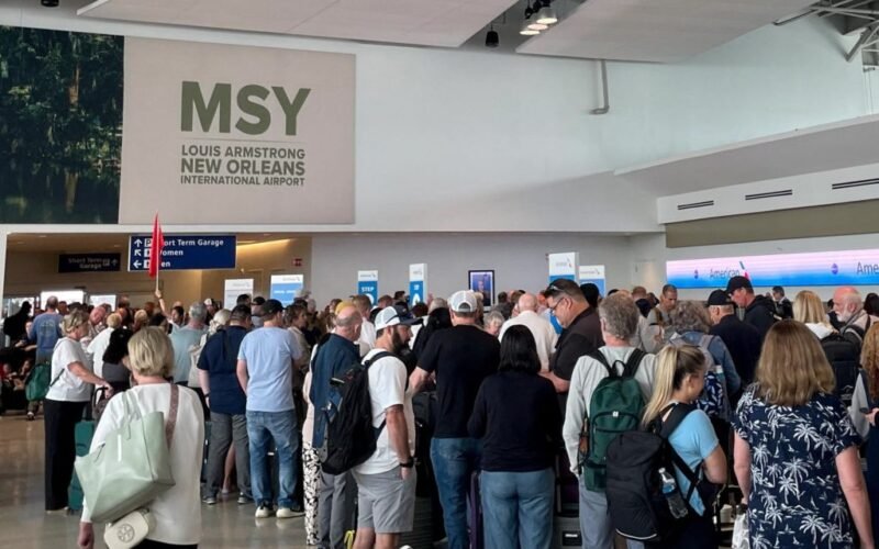 When they finally sat down to eat, she decided to take another look at the available flights, fearing that others in line would have to cancel and rearrange their plans, and found three seats on a flight that took her family home Sunday afternoon. When they landed at the New Orleans airport, the line extended into the parking garage, she said.